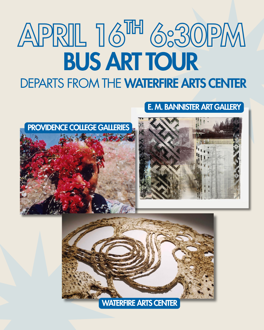 This 6:30PM Bus Tour departs from The WaterFire Arts Center and includes stops at: