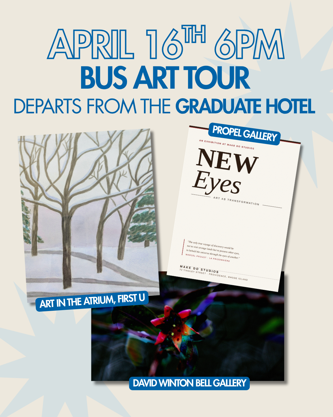Join us for April’s Gallery Night! Tours depart from the Graduate Hotel at various times throughout the evening and return approximately two hours later. Please note which tour you are registering for, as departure times vary. These are walking and bus tours, so wear comfortable shoes and dress for the weather!