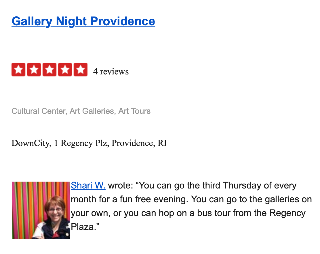 Providence Gallery Night in the 2019 YELP Adventure Guide!